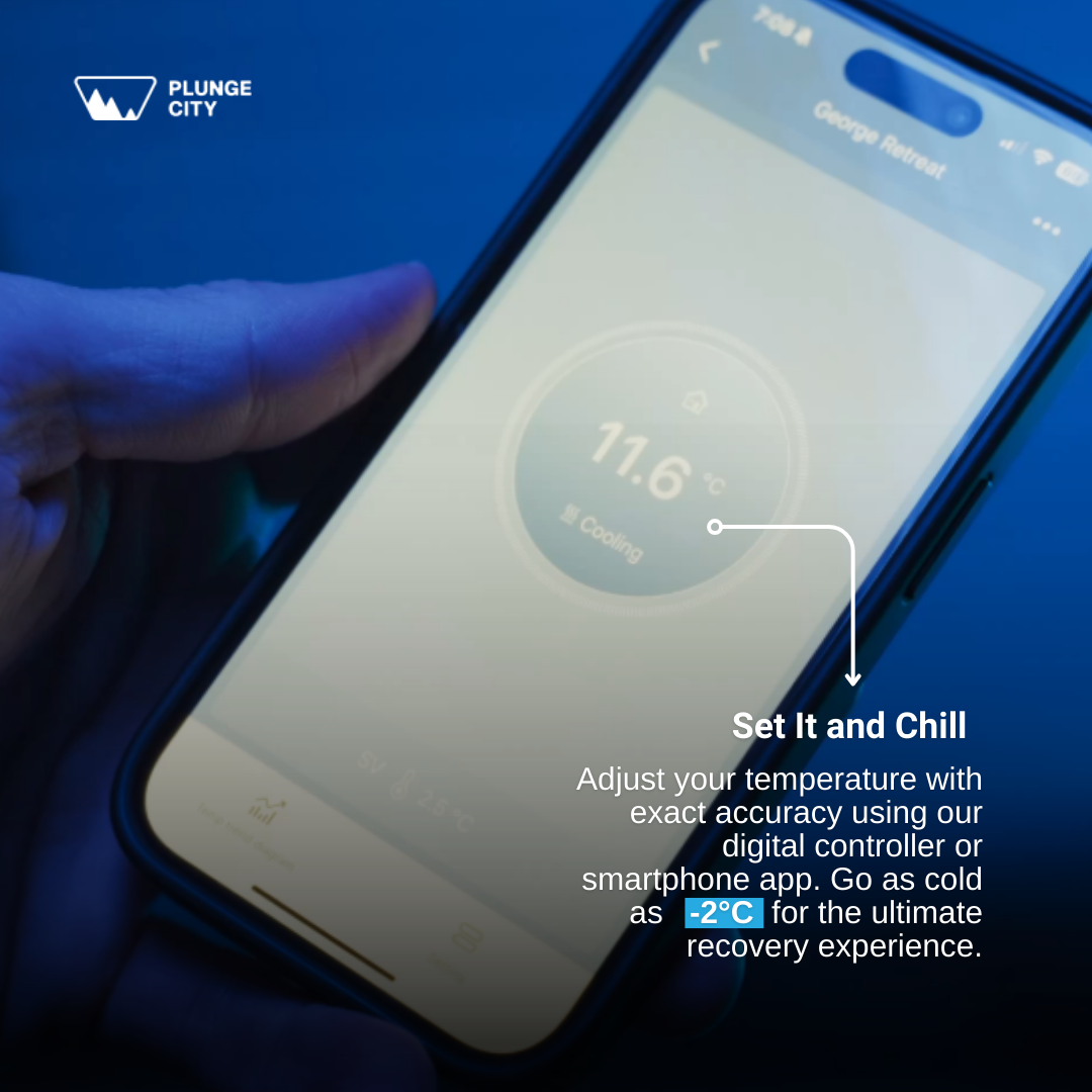 Engineered for the perfect fit, our cold plunge measures 153 cm long, 72 cm wide, and 82 cm high. Tested personally by our founder (6 ft tall, 95 kg), it offers generous space and comfort — even users up to 6 ft 6 in can fit with ease. The length lets you stretch your legs fully, while the width provides shoulder room for full relaxation. The water level rises to your neck for a complete, immersive plunge, and you can even submerge your head for that final refreshing hit. Beginners can start on the built-in step, easing in gradually for a more comfortable experience. It’s a plunge that truly suits everyone — from first-timers to seasoned cold therapy pros.