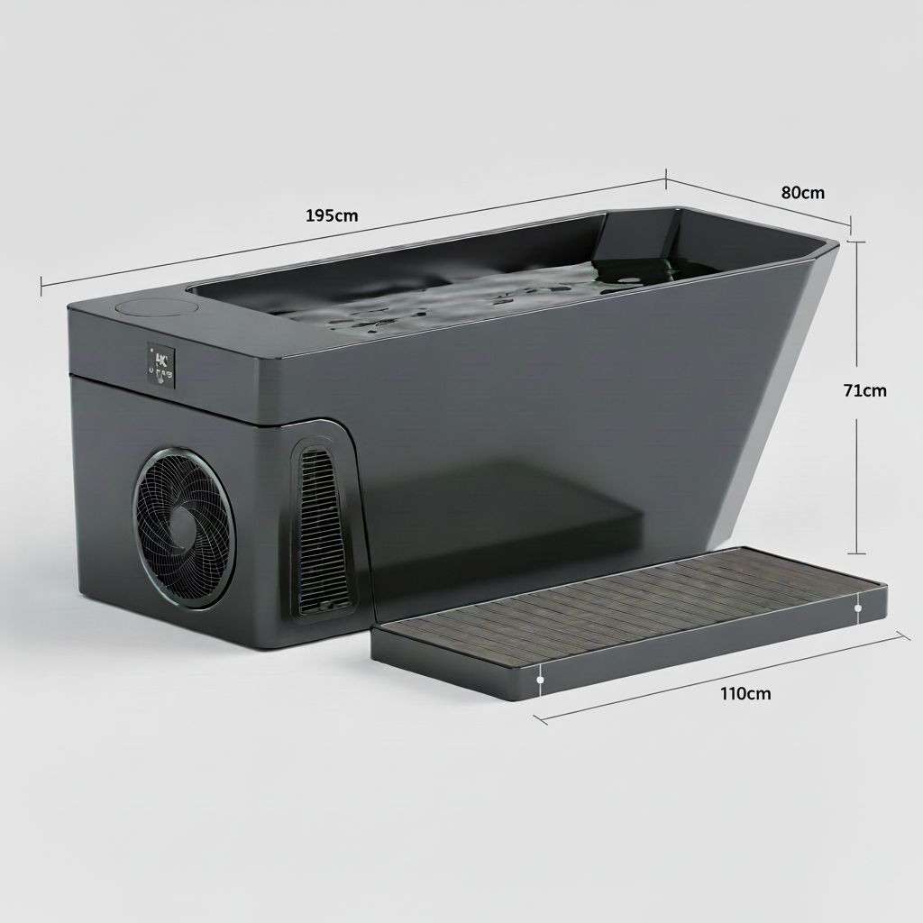 It’s large enough for full-body immersion while maintaining a compact footprint that fits easily in most home gyms, patios, or garages.